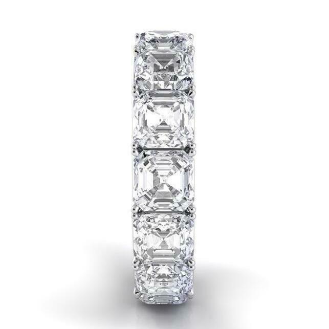 6Ct Asscher Cut Diamond Iced Full Eternity Wedding Band 14K White Gold Finish