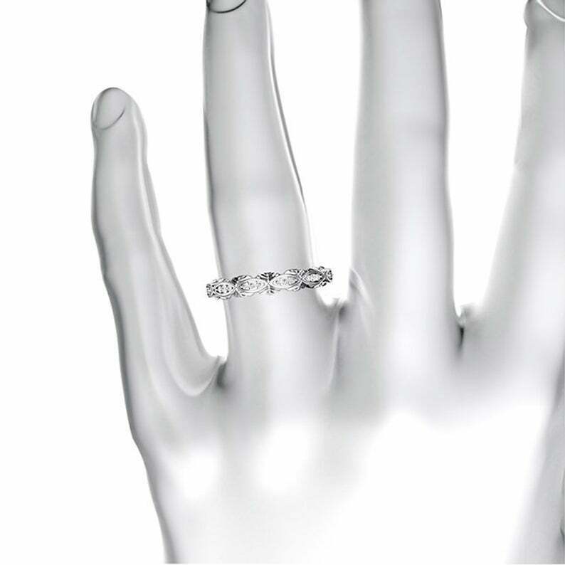 Filigree Full Eternity Wedding Band 0.2ct Round Cut Diamond 14k WhiteGold Finish