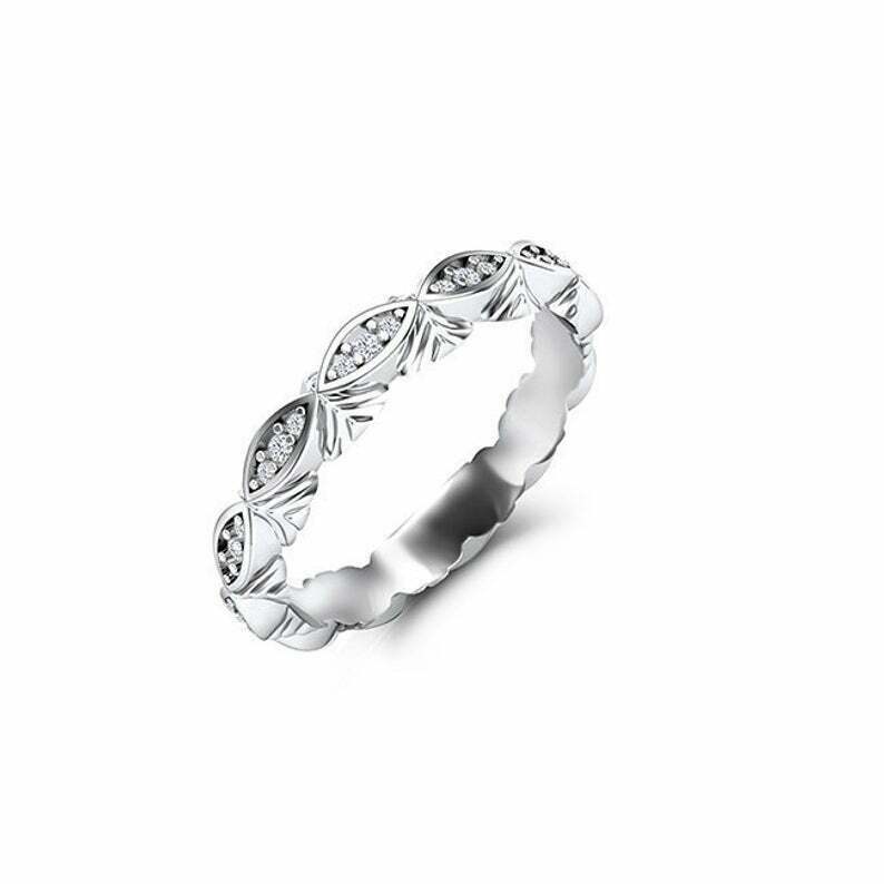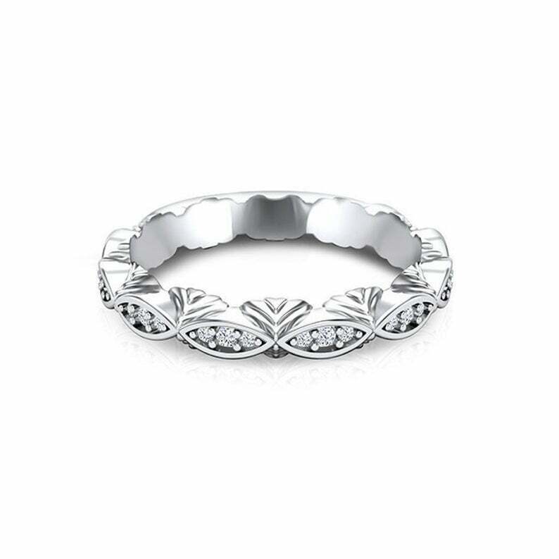 Filigree Full Eternity Wedding Band 0.2ct Round Cut Diamond 14k White Gold Finish