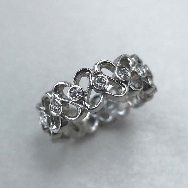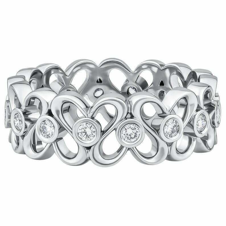 Filigree Full Eternity Wedding Band 1ct Round Cut Diamond 14k White Gold Finish