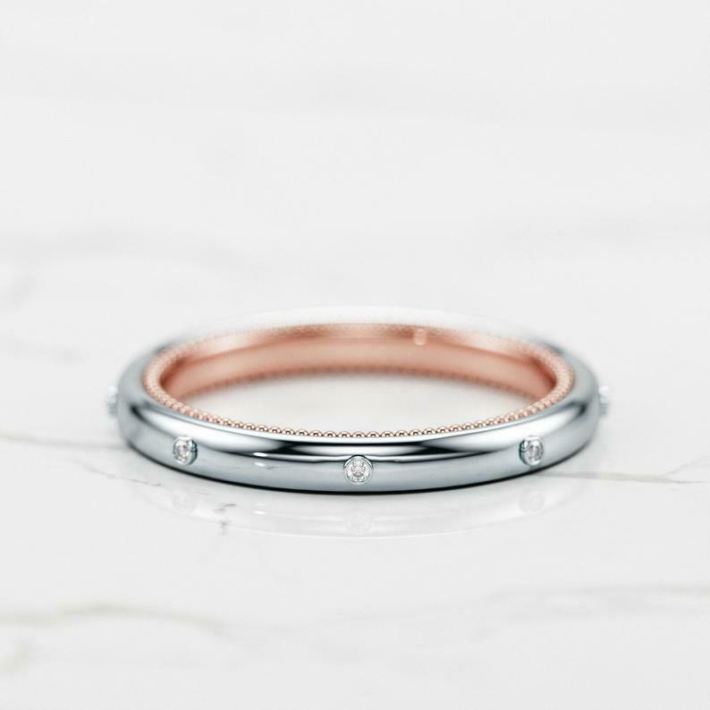 Flush Set Full Eternity Wedding Band 0.5ct Round Cut Diamond 14k DualGold Finish