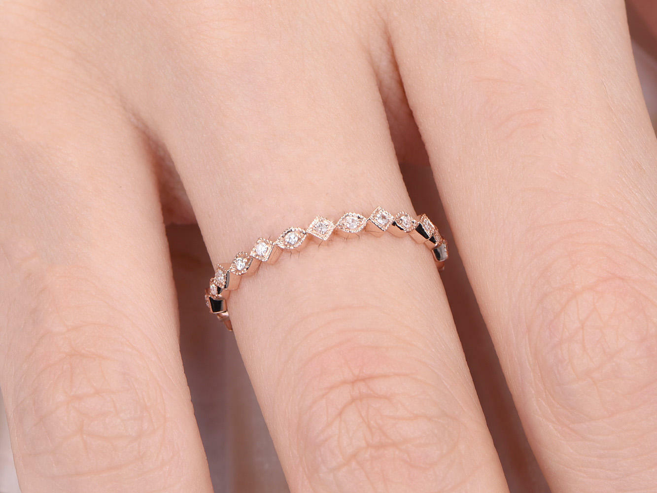 Milgrain Full Eternity Wedding Ring Band 1ct Round Cut Diamond 14k RoseGold Over