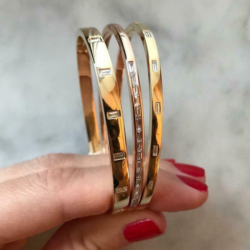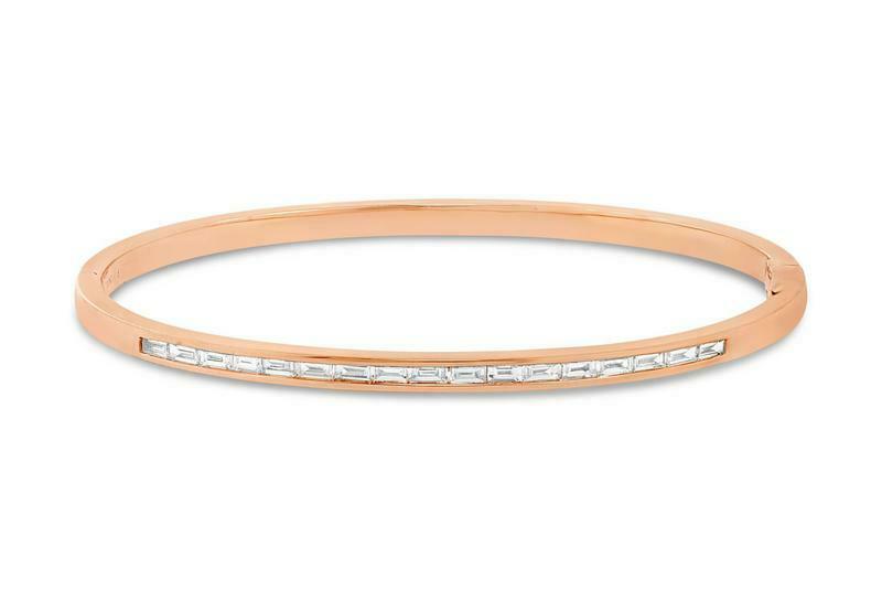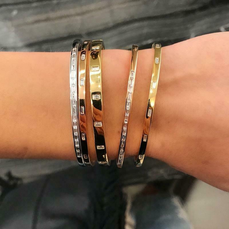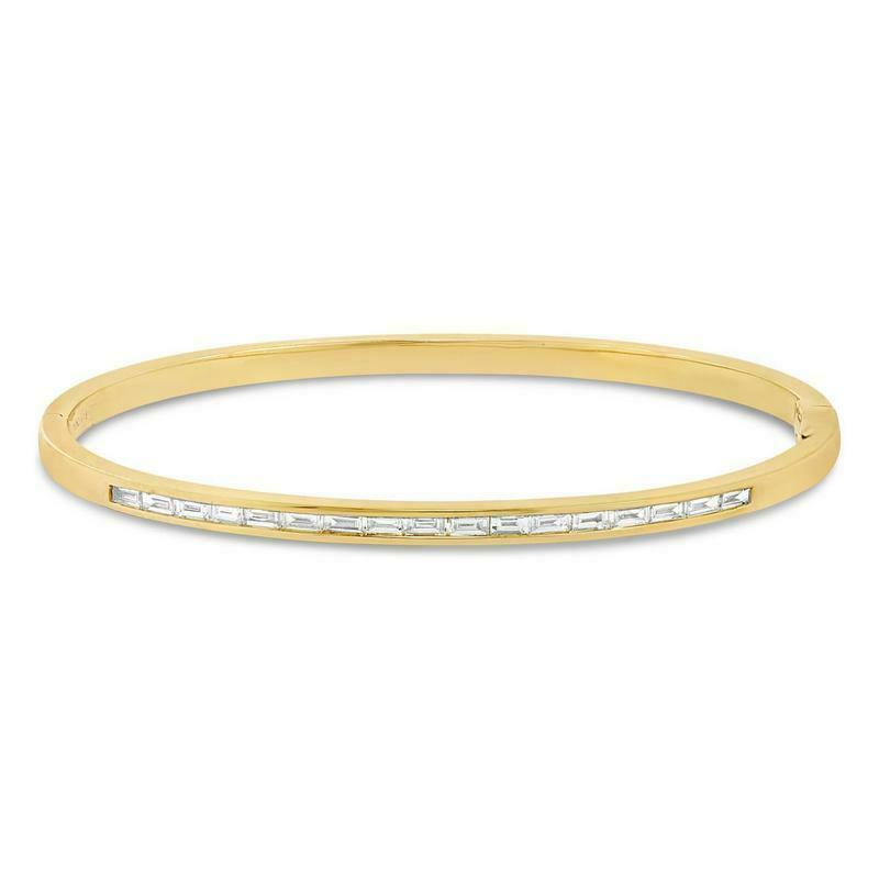0.65ct Baguette Cut Diamond Stylish Row Bangle Bracelet 14K Yellow Gold Finish