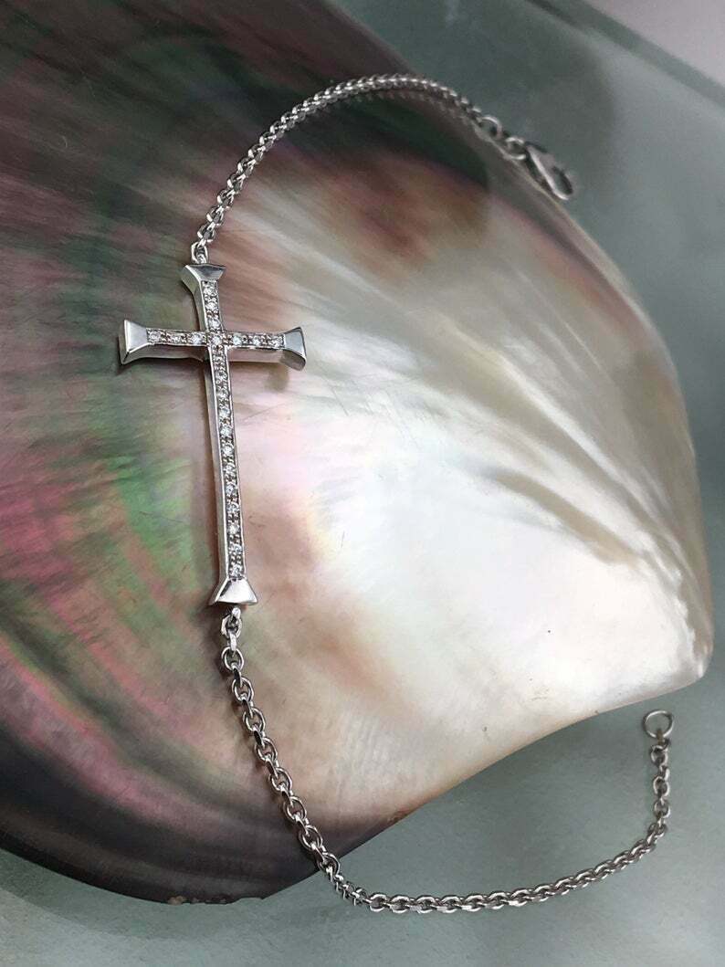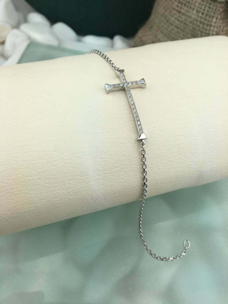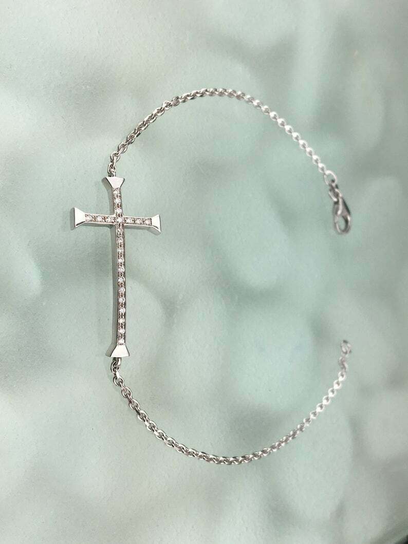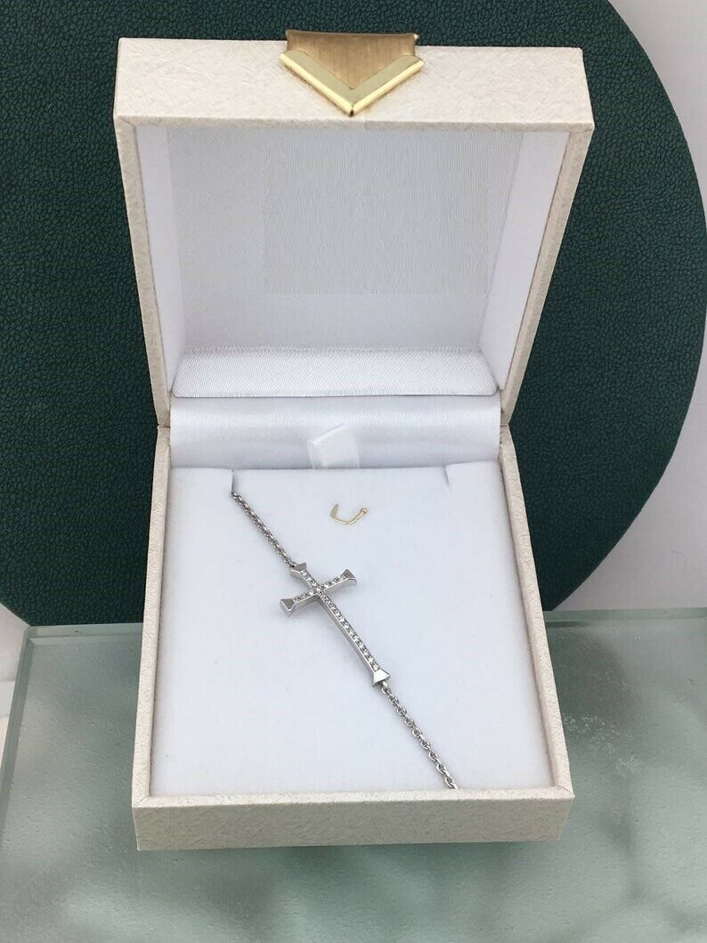 1.2ct Round Cut VVS1/D Diamond Cross Chain Design Bracelet 14k White Gold Finish