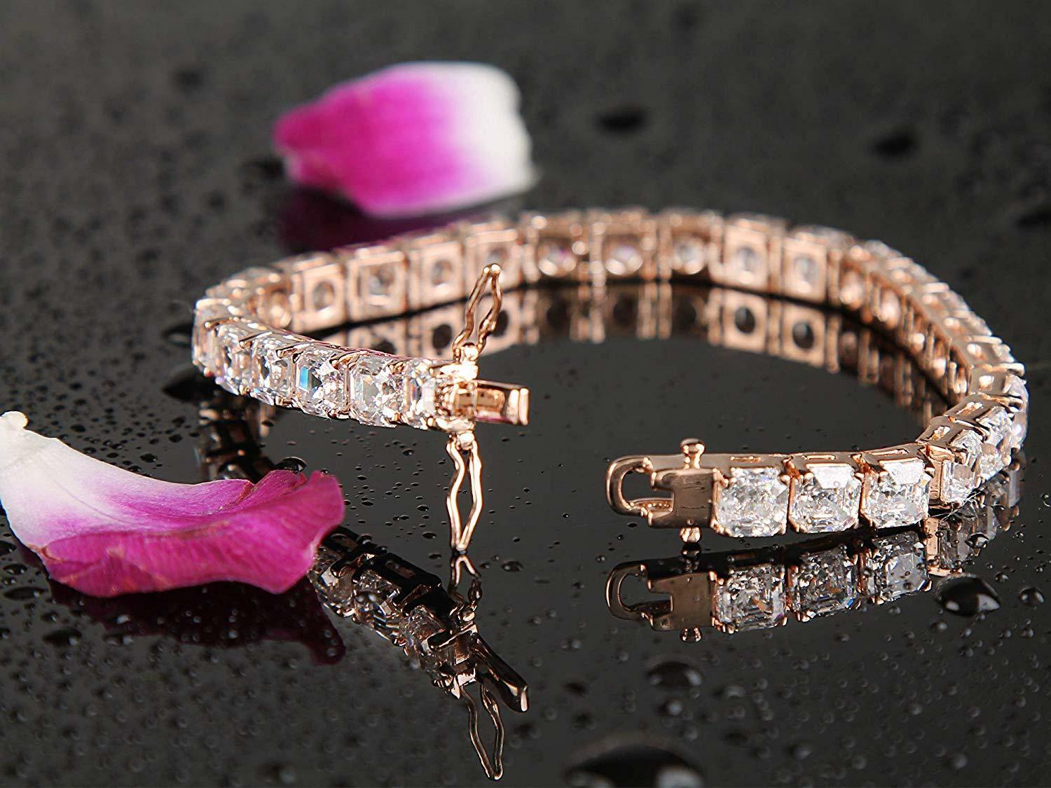 18Ct Assher Cut Sparkle VVS1/D Diamond Tennis Bracelet 14K Rose Gold Finish