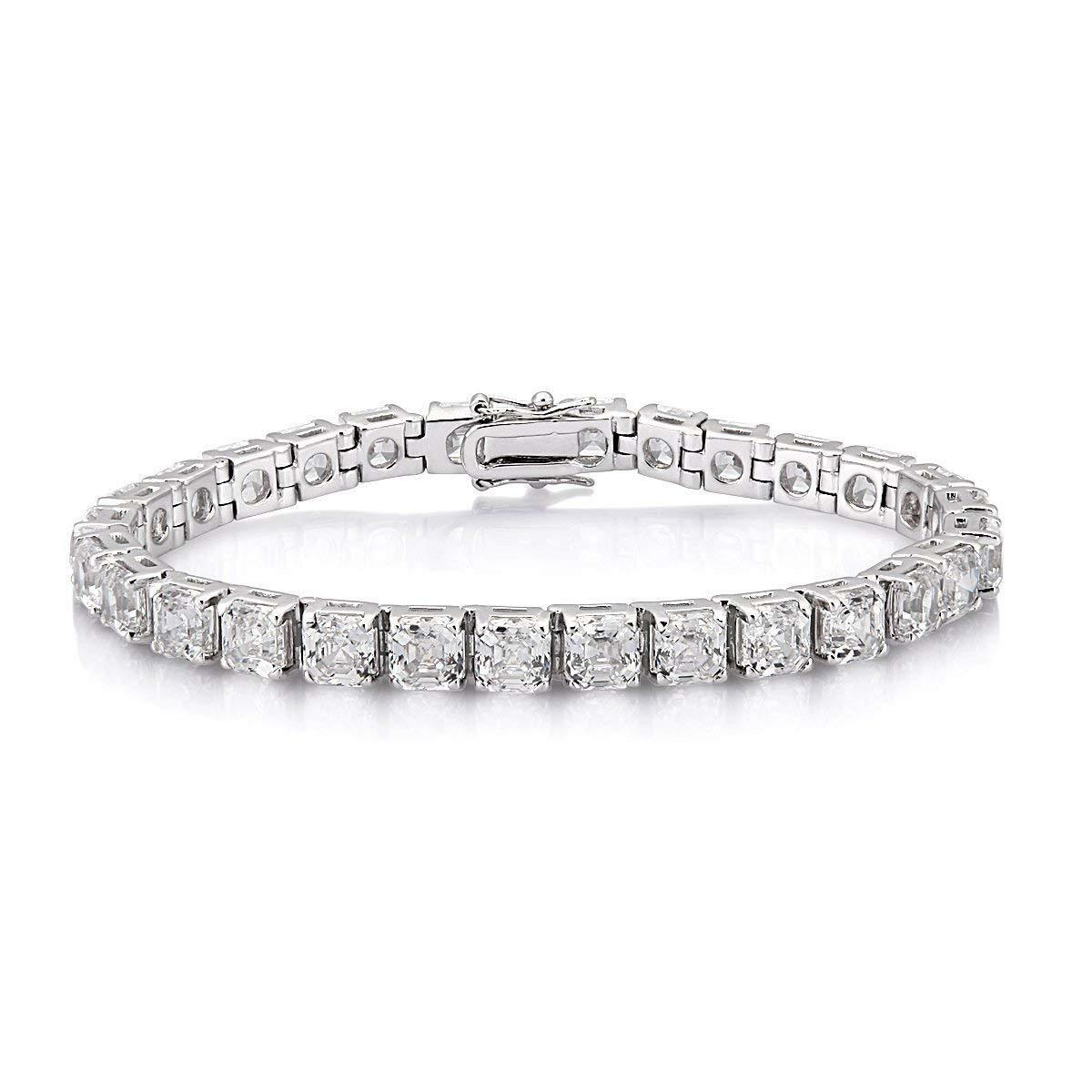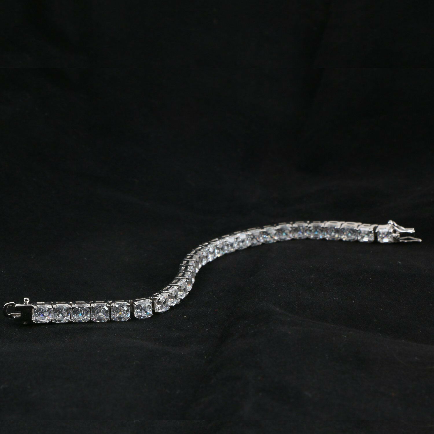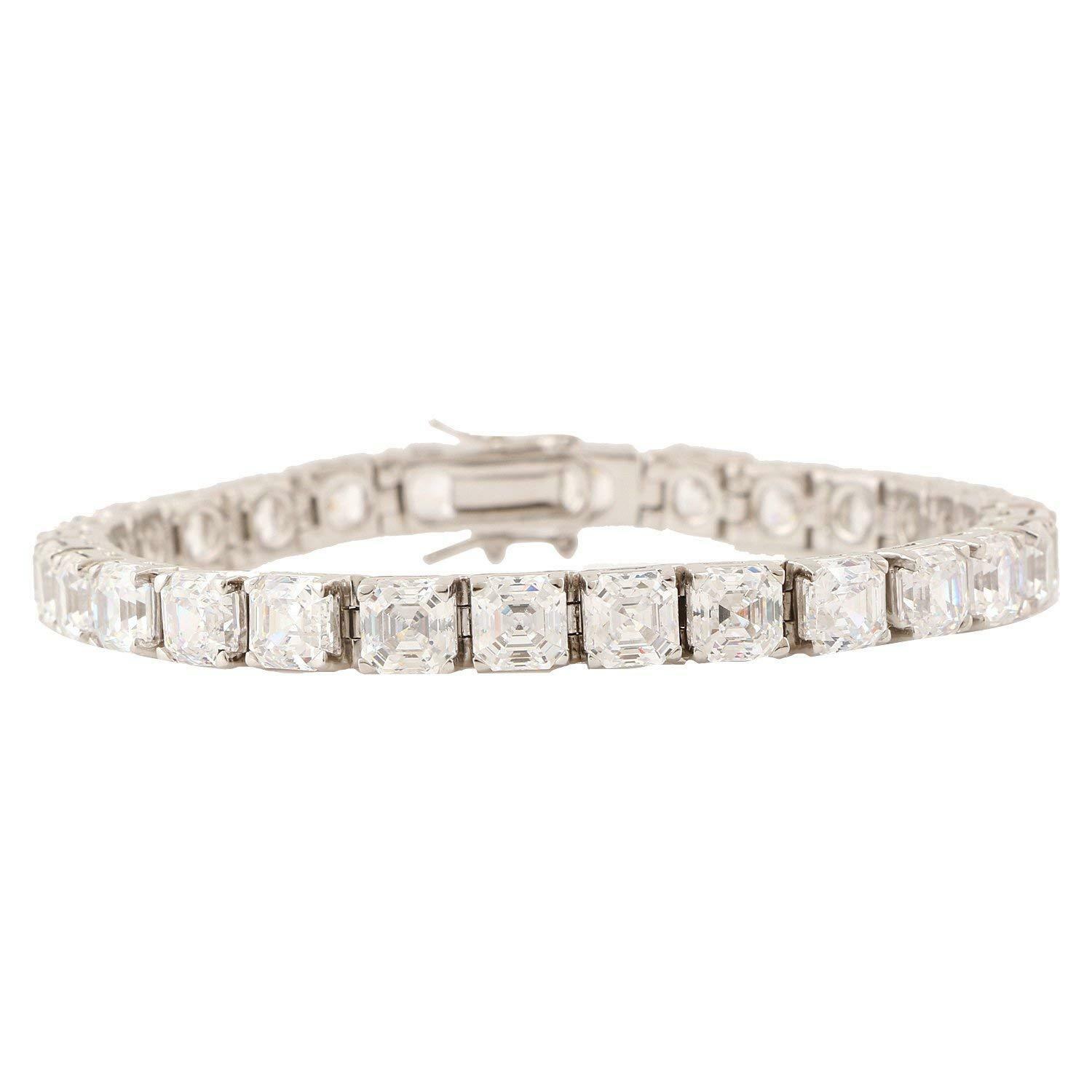 18Ct Assher Cut Sparkle VVS1/D Diamond Tennis Bracelet 14K White Gold Finish