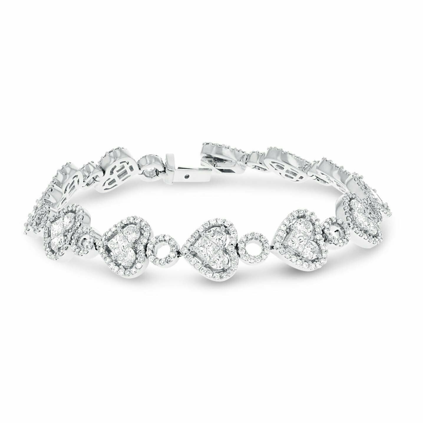 25Ct Princess Cut Diamond Heart Valentine Gift Tennis Bracelet 14K White Gold Finish