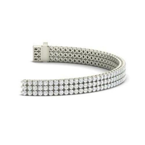 25Ct Round Sparkle Cut Diamond 3 Line Iced Tennis Bracelet 18K White Gold Finish