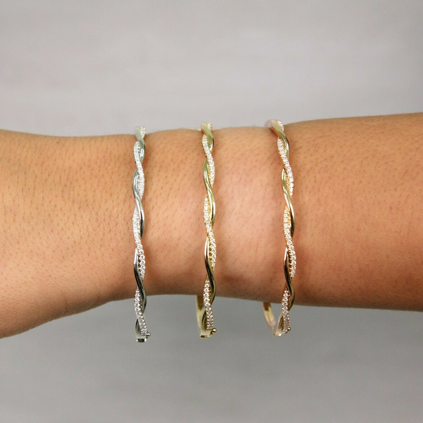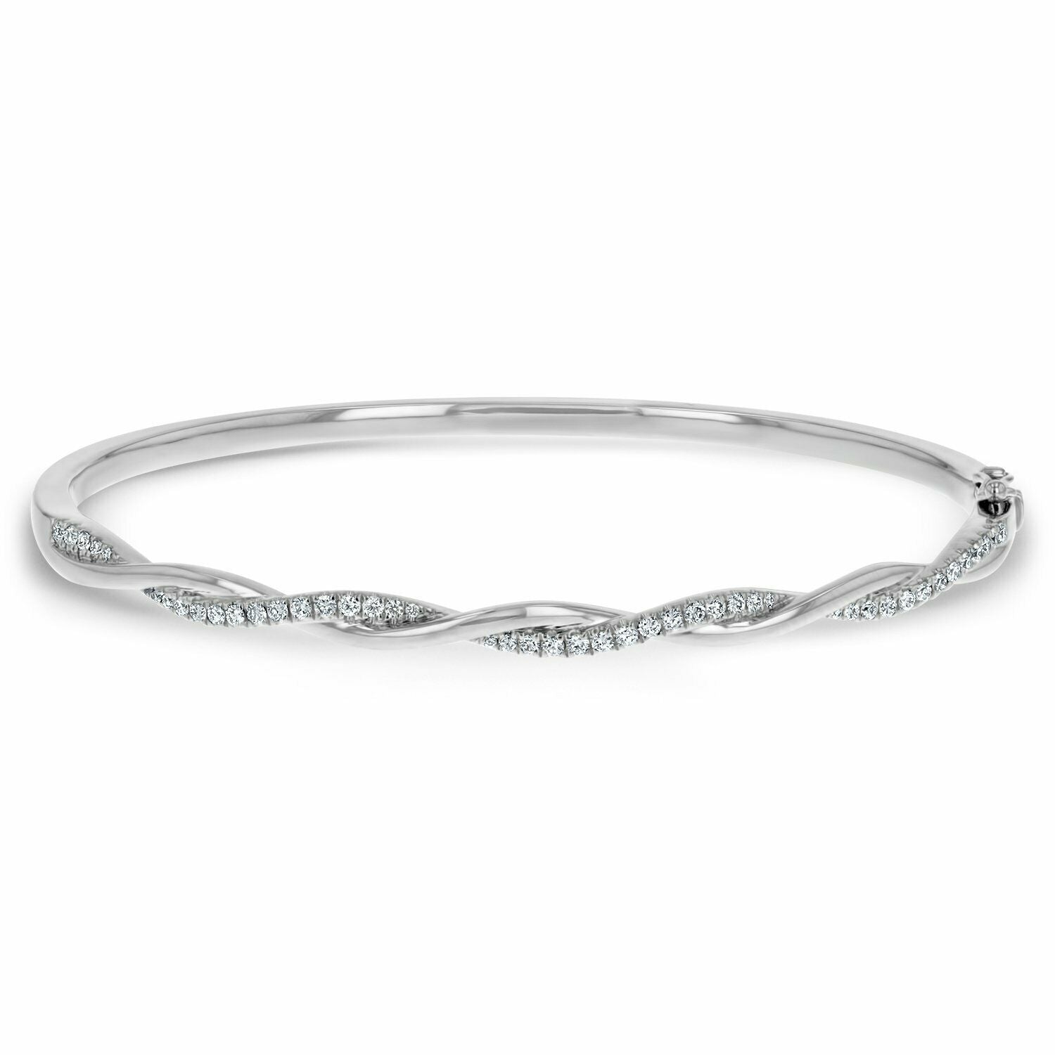 2ct Round Cut Diamond Wave Twist Women Cuff Bangle Bracelet 14K WhiteGold Finish