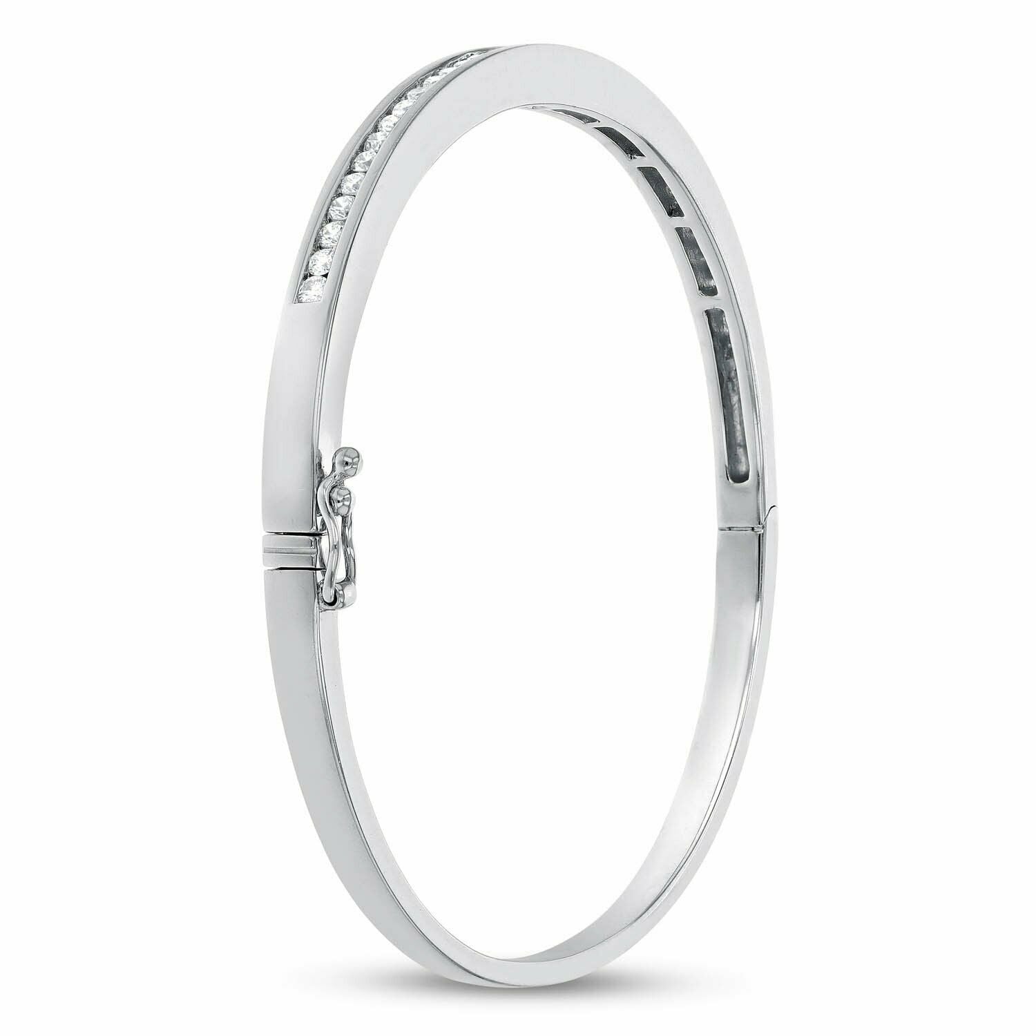 4ct Round Cut Diamond Channel Set Cuff Bangle Bracelet 14K White Gold Finish