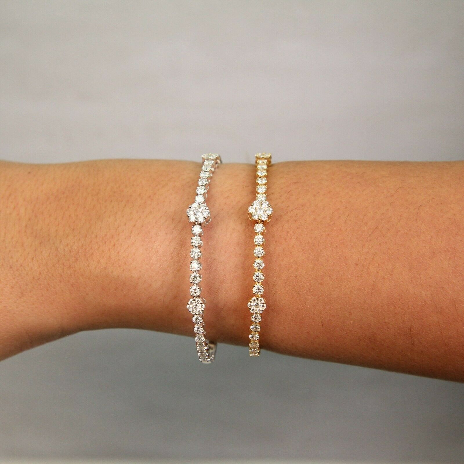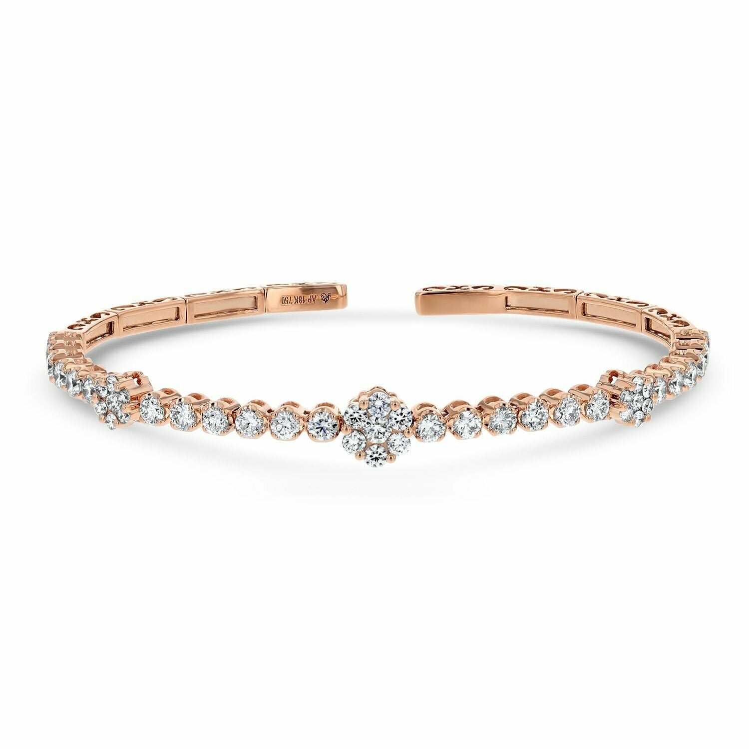 5ct Round Cut Diamond Floral Women Cuff Bangle Bracelet 14K Rose Gold Finish