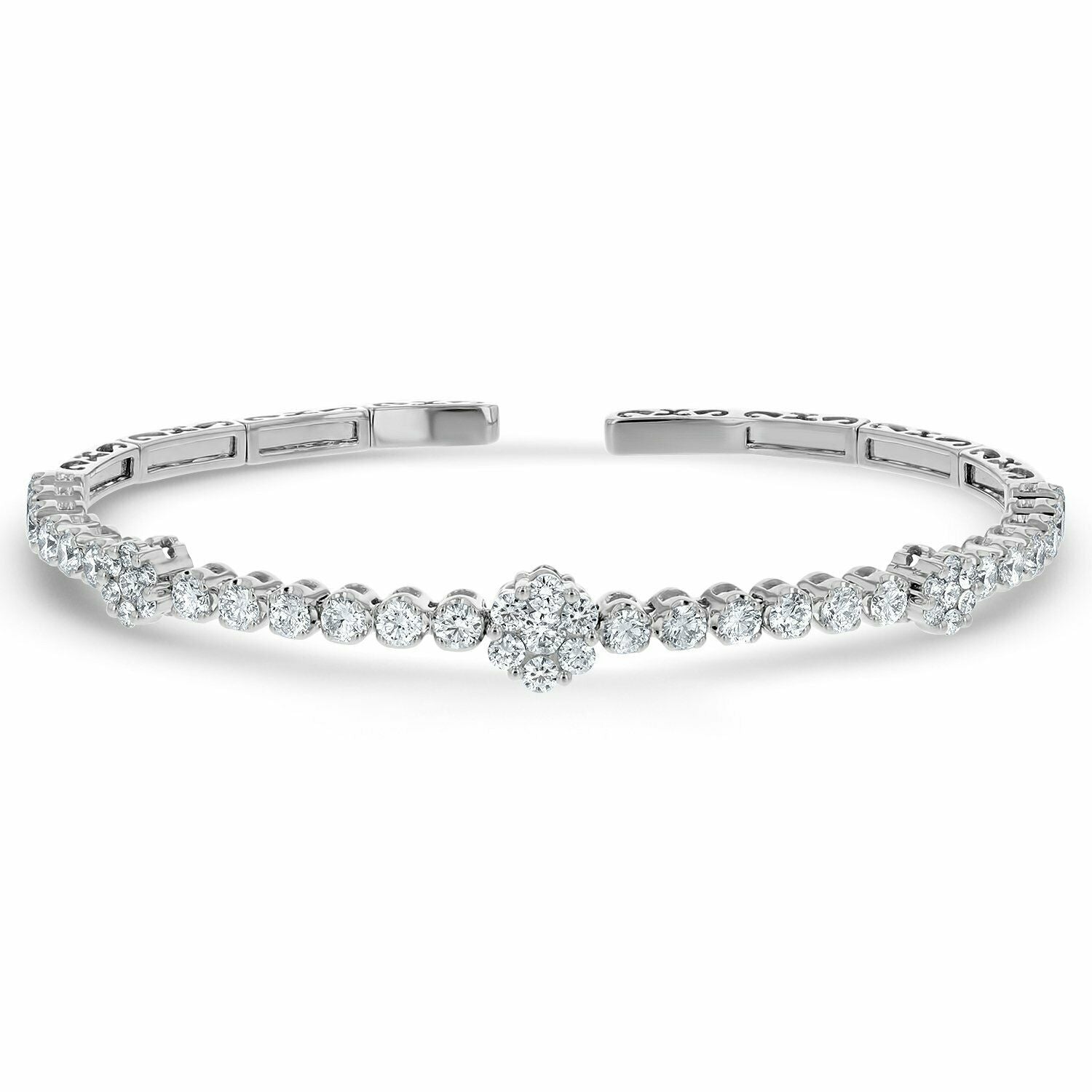 5ct Round Cut Diamond Floral Women Cuff Bangle Bracelet 14K White Gold Finish