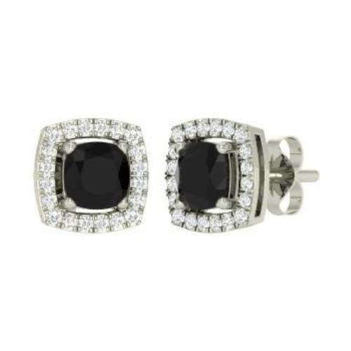 2Ct Cushion Cut Black Diamond Halo Stud Earrings for Women 18K White Gold Finish