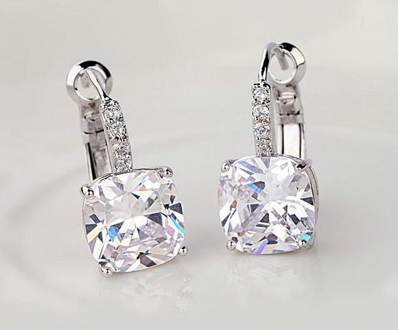 2.5Ct Cushion Cut VVS1/D Diamond Daily Wear Drop Earrings 14K White Gold Finish