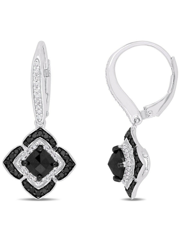 4ct Cushion Cut Black Diamond Art Deco Party Drop Earrings 14k White Gold Finish