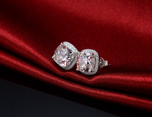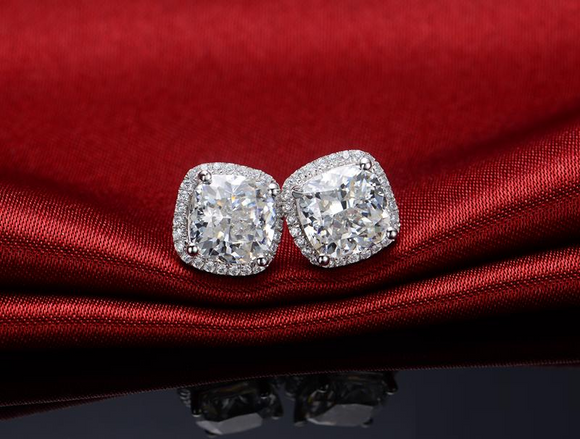 3Ct Cushion Cut VVS1/D Diamond Halo Stylish Stud Earrings 18K White Gold Finish
