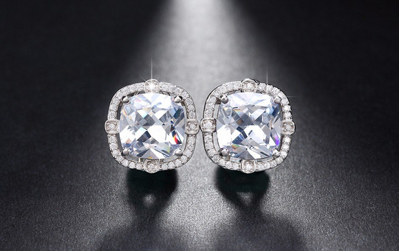 2.5ct Cushion Cut Diamond Halo French Back Stud Earrings 14k White Gold Finish