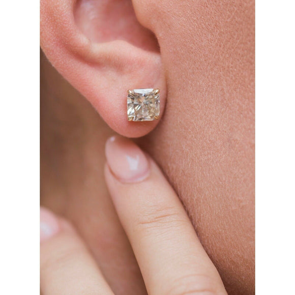 2.4ct Cushion Cut VVS1D Diamond Solitaire Stud Earrings 14k Yellow Gold Finish