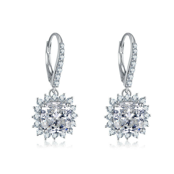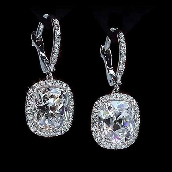 5Ct Cushion Cut Diamond Halo Solitaire Elegant Drop Earrings 14K White Gold Over