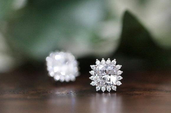 Halo Bridal Stud Earrings 1ct Cushion Cut VVS1D Diamond 14k White Gold Finish