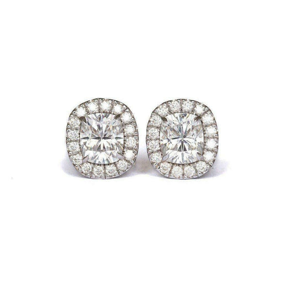 2ct Cushion Cut VVS1D Diamond Halo Stylish Stud Earrings 14k White Gold Finish
