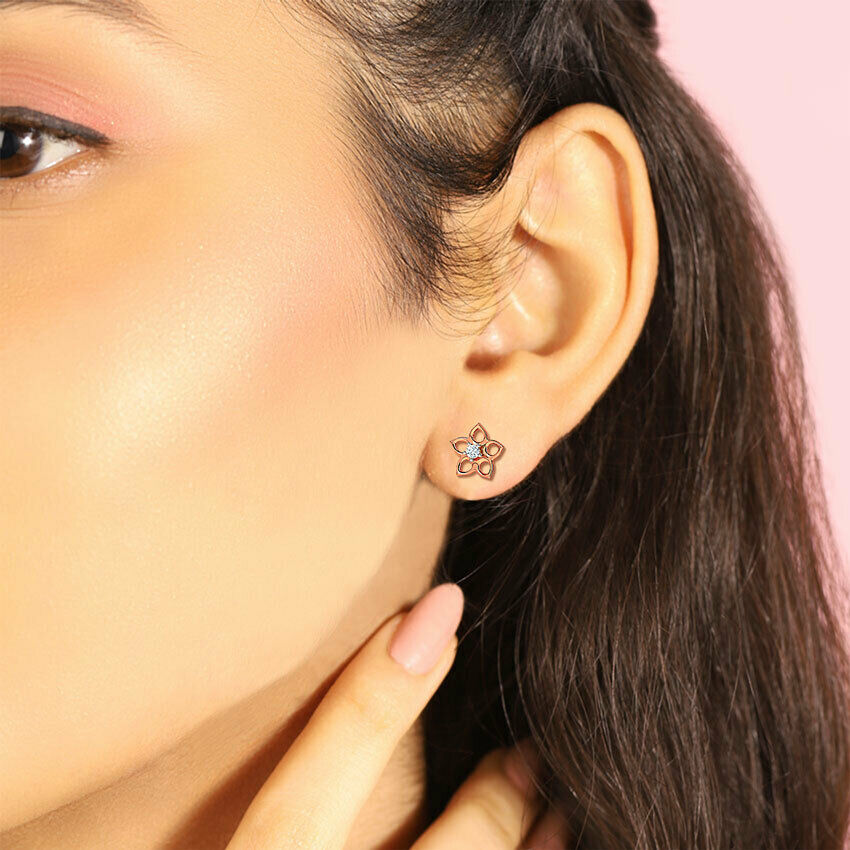 0.3ct Stud Earrings Round Cut Diamond Floral Solitaire 14k Rose Gold Finish