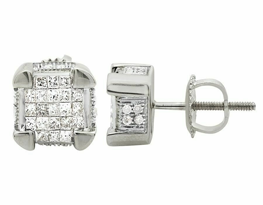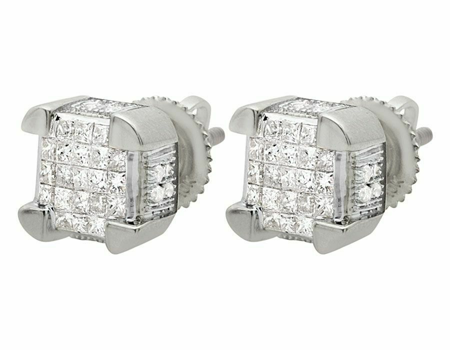 0.5ct Princess Cut Diamond Cube Hip Hop Iced Stud Earrings 14k White Gold Finish
