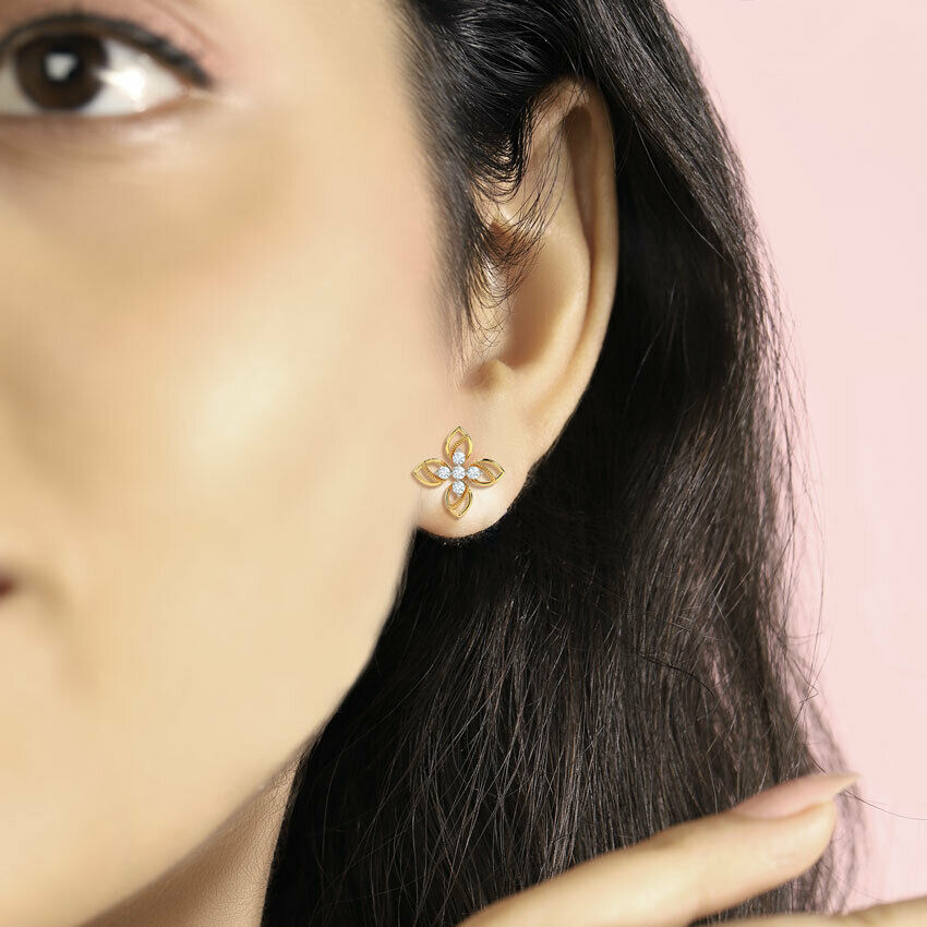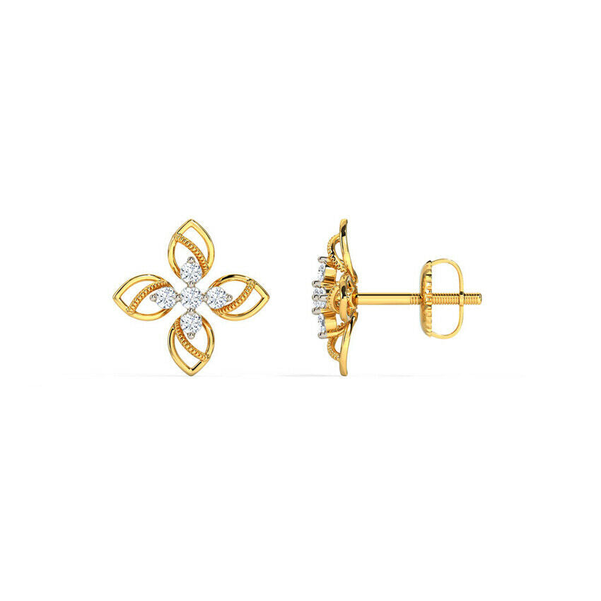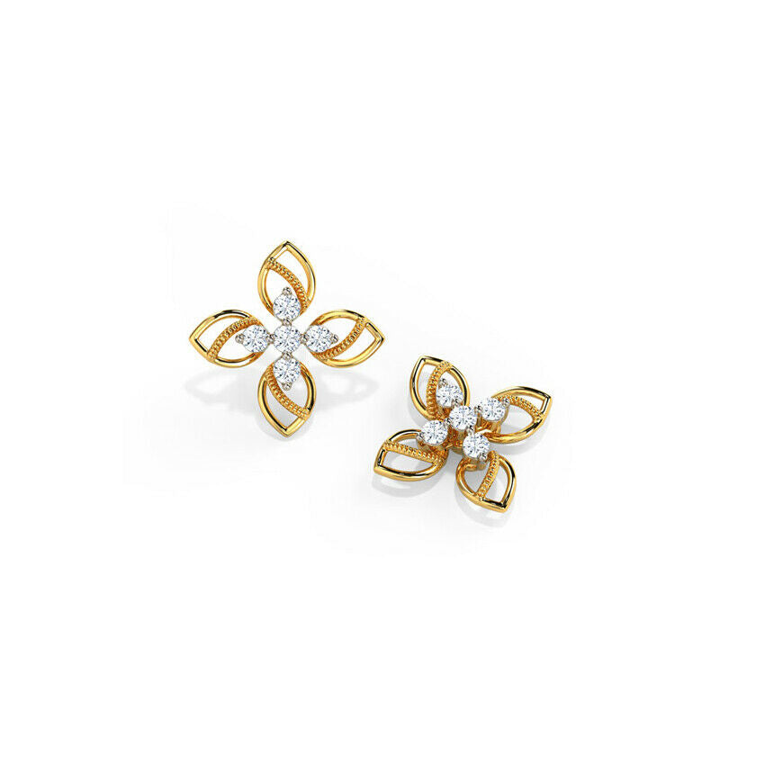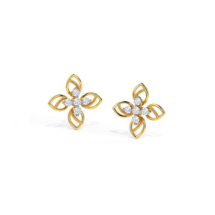0.6ct Stud Earrings Round Cut Diamond Floral Petite Design 14k YellowGold Finish