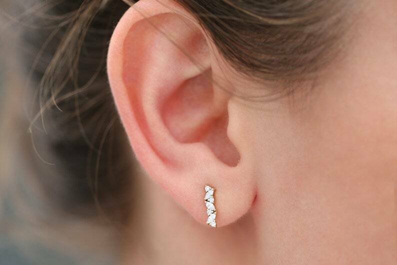 0.7ct Drop Earrings Marquise Cut Diamond Vertical Design 14k Yellow Gold Finish