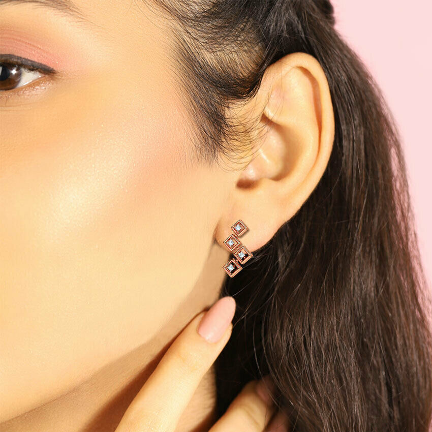 0.7ct Drop Earrings Round Cut Diamond Stylish Geometric 14k Rose Gold Finish
