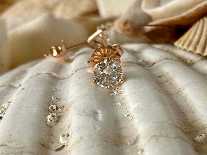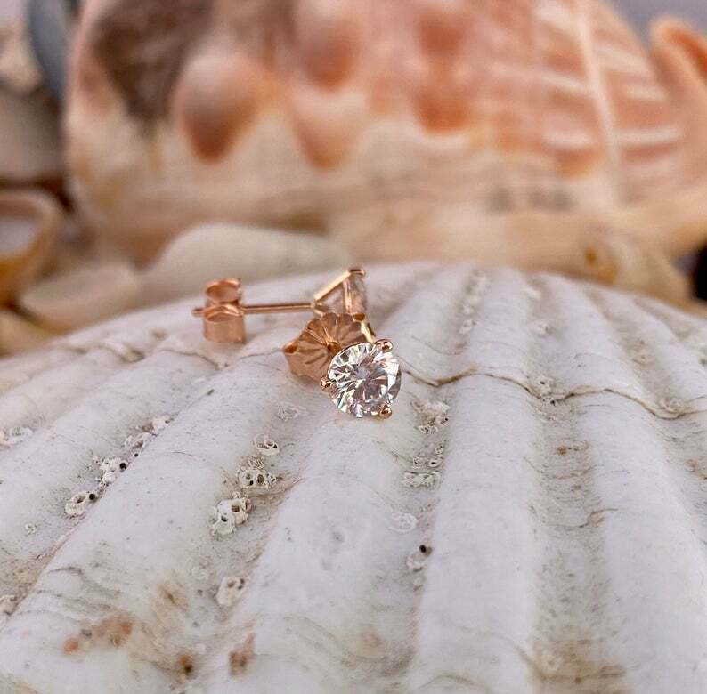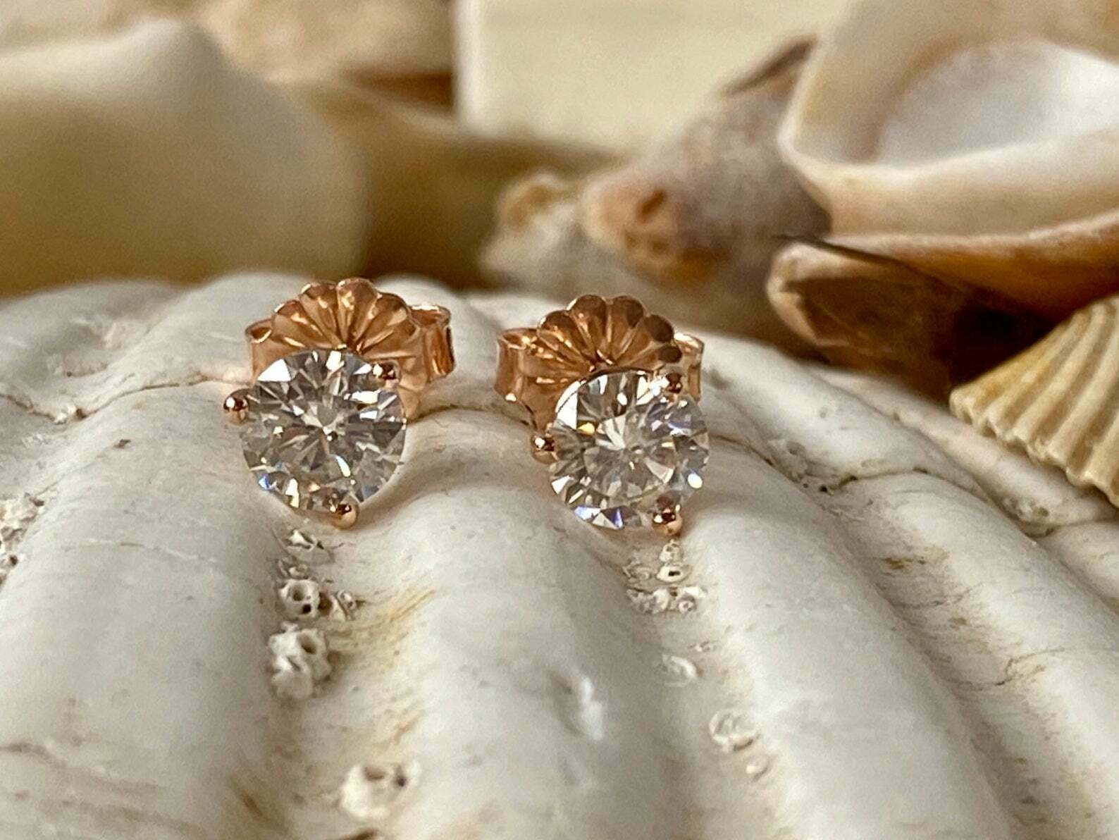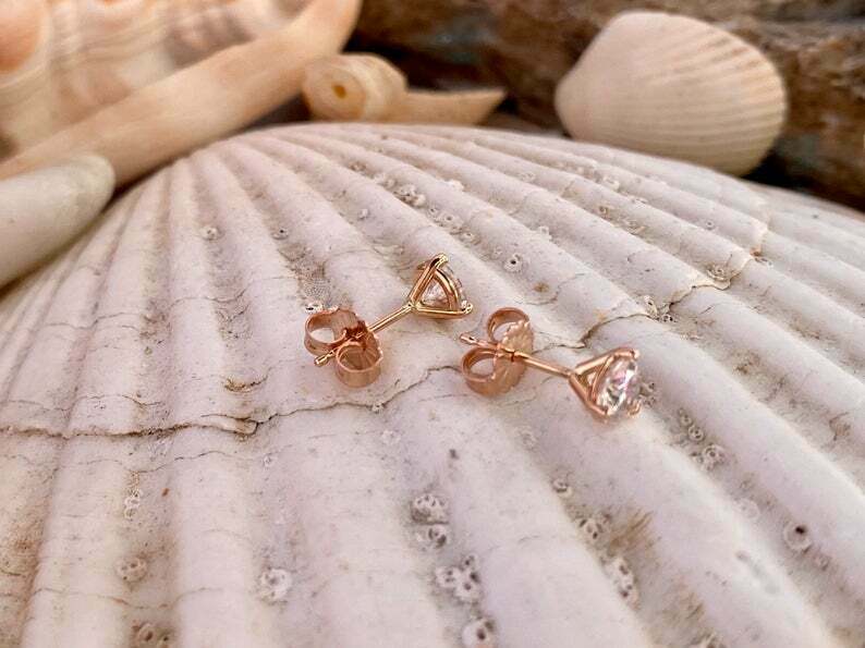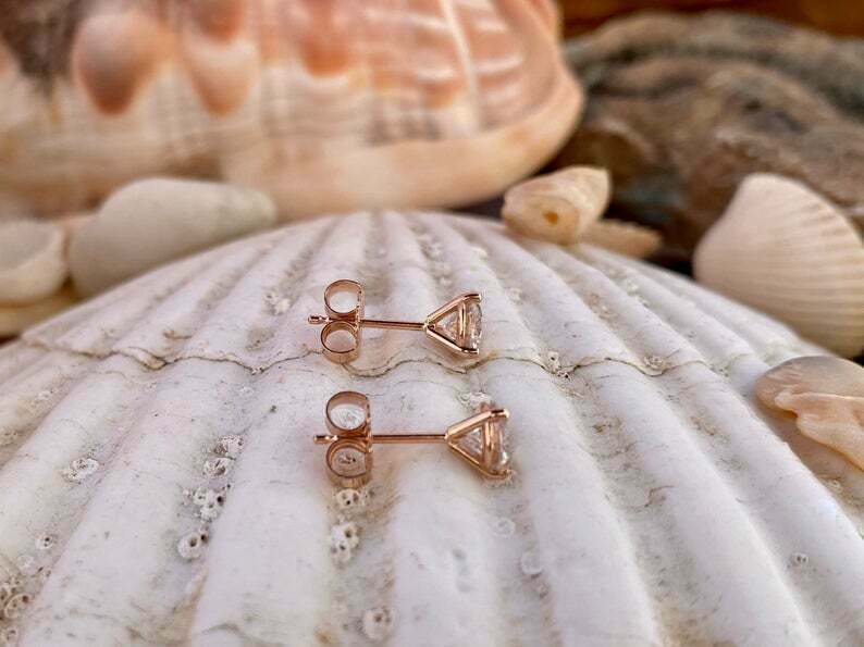 0.7ct Stud Earrings Round Cut Diamond Solitaire Women Design 14k RoseGold Finish