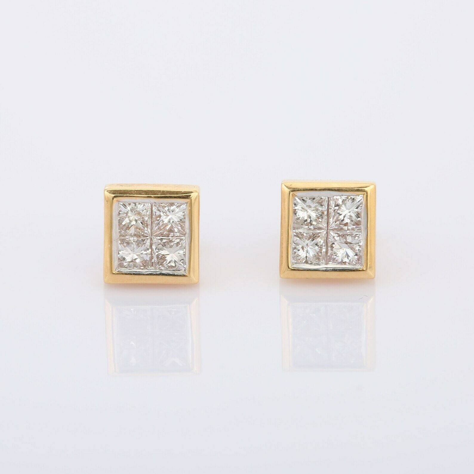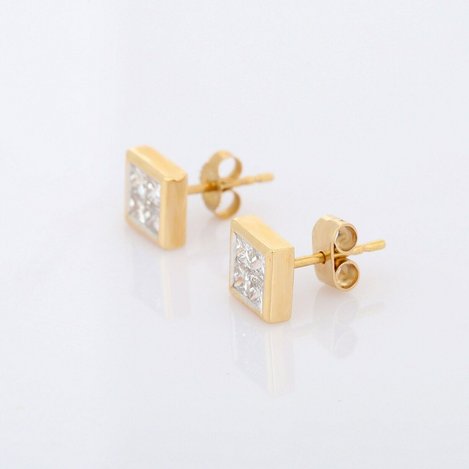 1.2ct Princess Cut Diamond Cluster Square Stud Earrings 14k Yellow Gold Finish