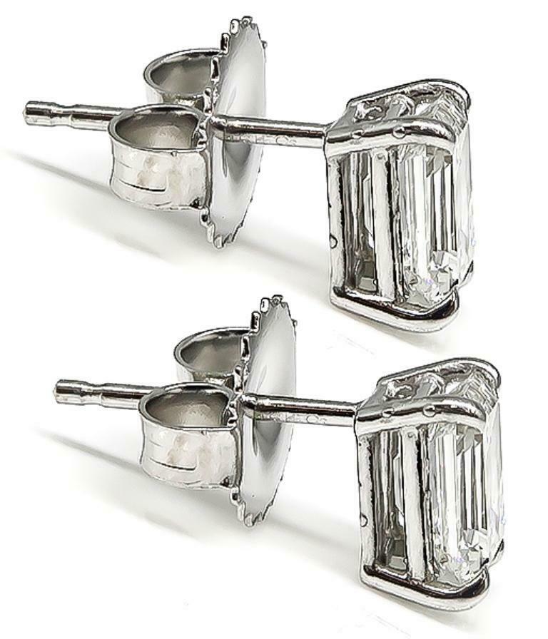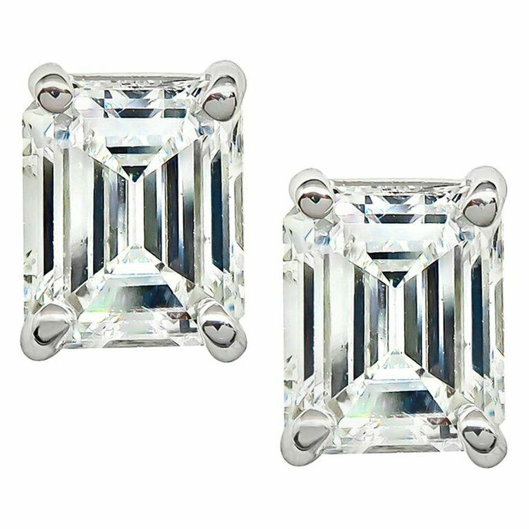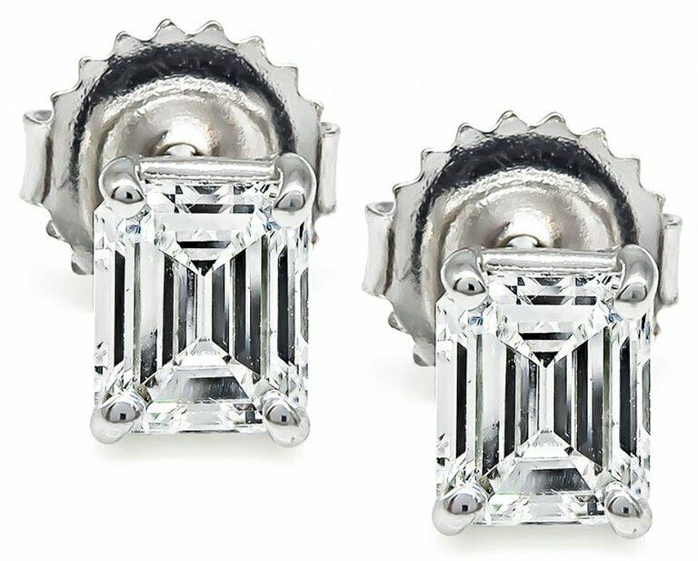 1.32ct Emerald Cut VVS1D Diamond Solitaire Stud Earrings 14k White Gold Finish