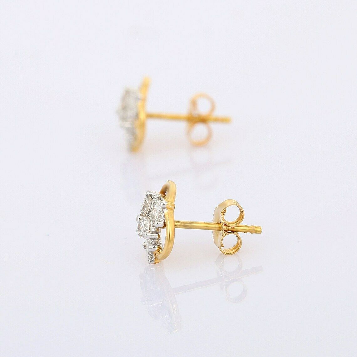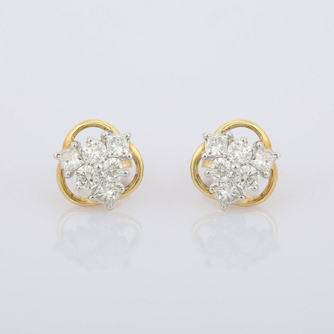 1.45ct Stud Earrings Princess Round Cut Diamond Cluster 14k Yellow Gold Finish