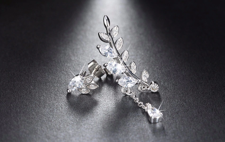 1.5ct Marquise Cut Diamond Unique Leaf Design Drop Earrings 14k WhiteGold Finish