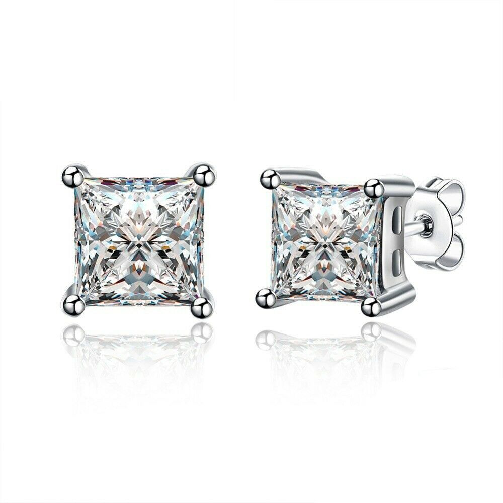 1.5ct Princess Cut VVS1D Diamond Solitaire Stud Earrings 14k White Gold Finish
