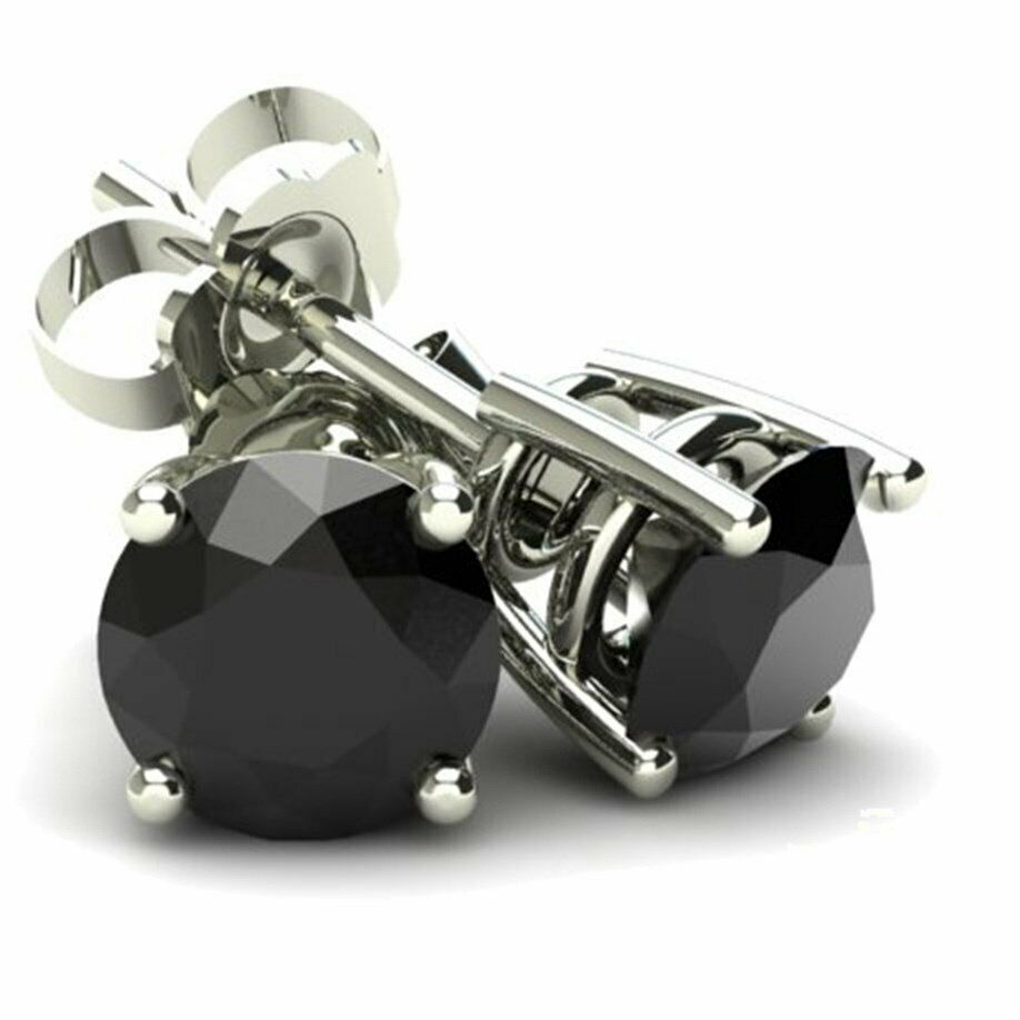 1.5Ct Round Cut Black Diamond Classic Solitaire Stud Earring 14K White Gold Over