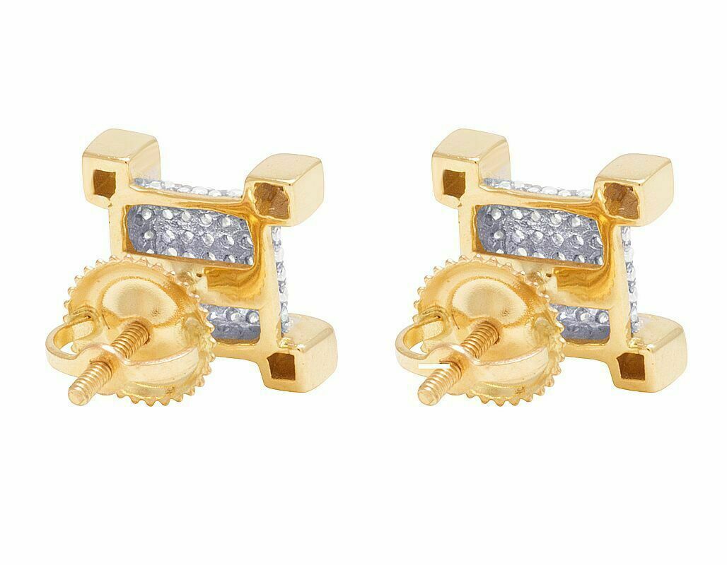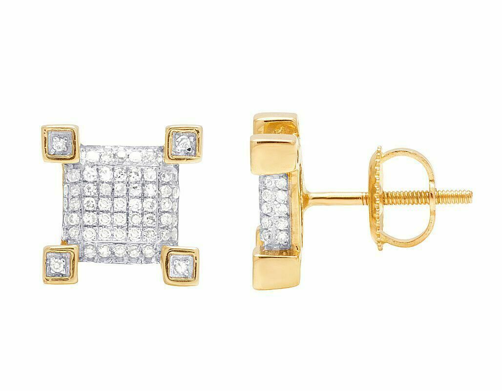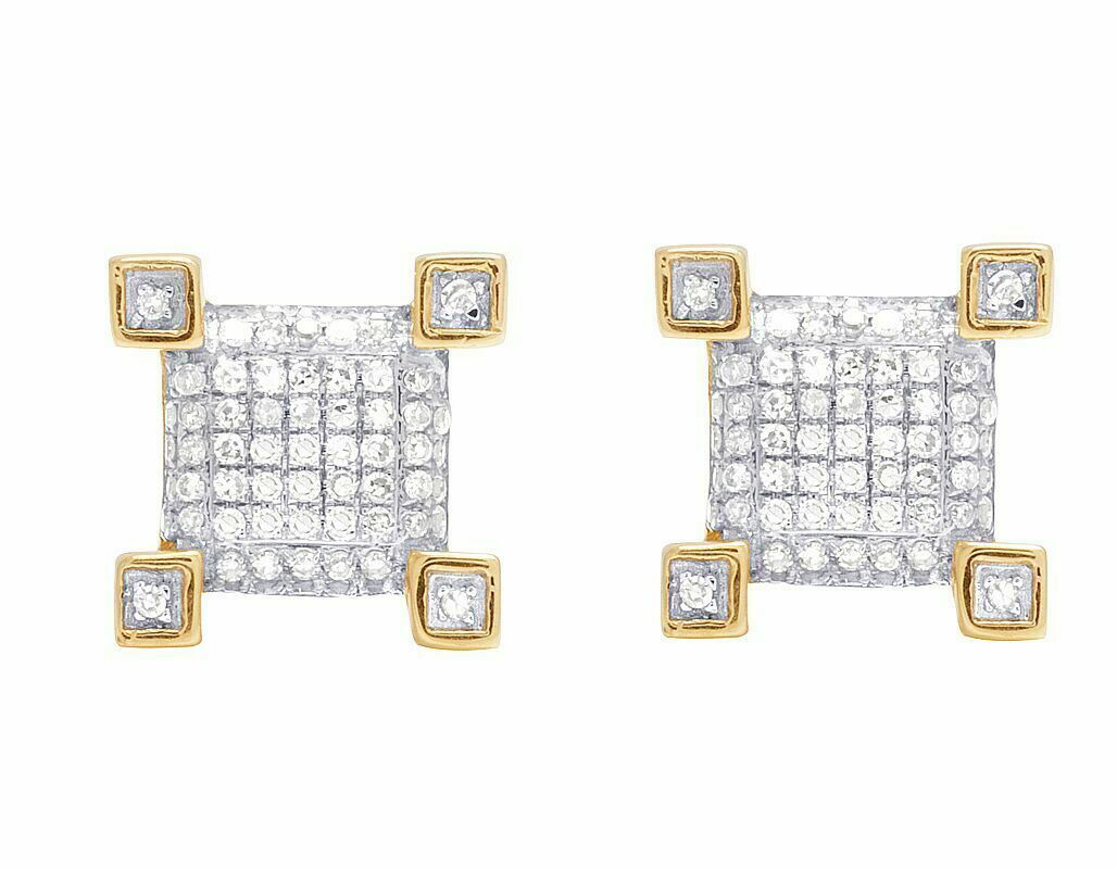 1.5ct Round Cut Diamond Square Cluster Stud Earrings Women 14k YellowGold Finish