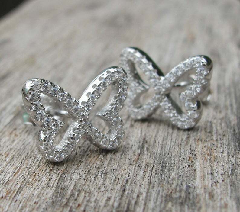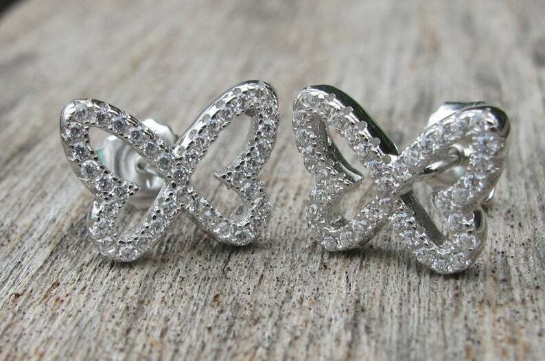 1.5ct Round Cut VVS1D Diamond Butterfly Design Stud Earrings 14k White Gold Over