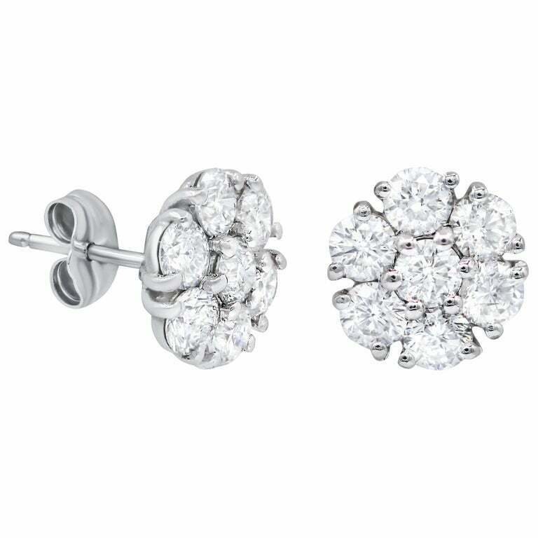 1.5ct Round Cut VVS1D Diamond Floral Cluster Stud Earrings 14k White Gold Finish