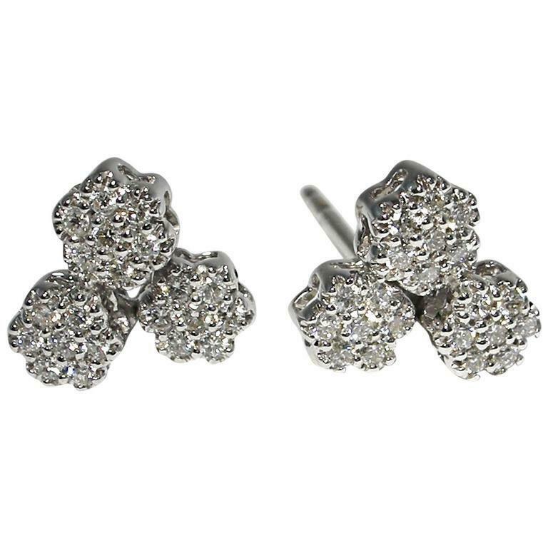 1.5ct Round Cut VVS1D Diamond Floral Cluster Stud Earrings 14k White Gold Finish