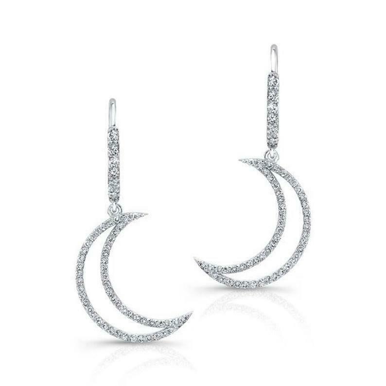 1.5ct Round Cut VVS1D Diamond Moon Crescent Drop Earrings 14k White Gold Finish