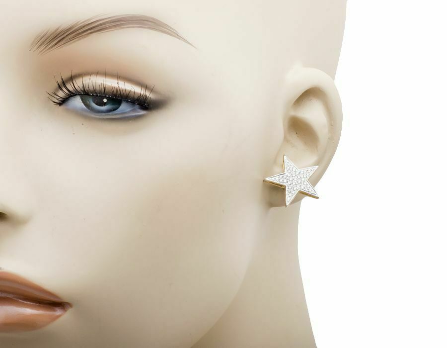 1.5ct Round Cut VVS1D Diamond Star Stud Earrings Women 14k Yellow Gold Finish