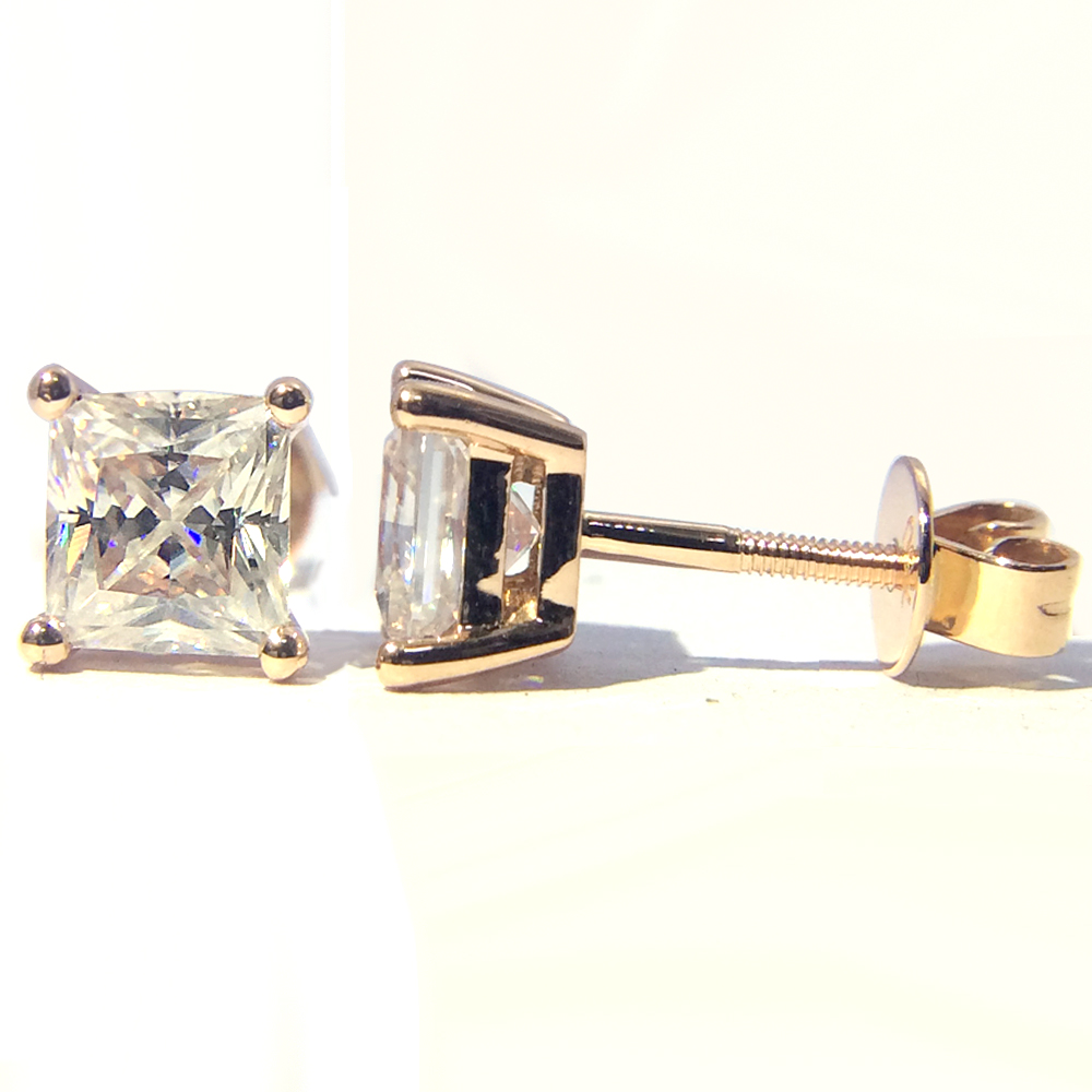 1.6ct Princess Cut VVS1D Diamond Screw Back Stud Earrings 14k Rose Gold Finish