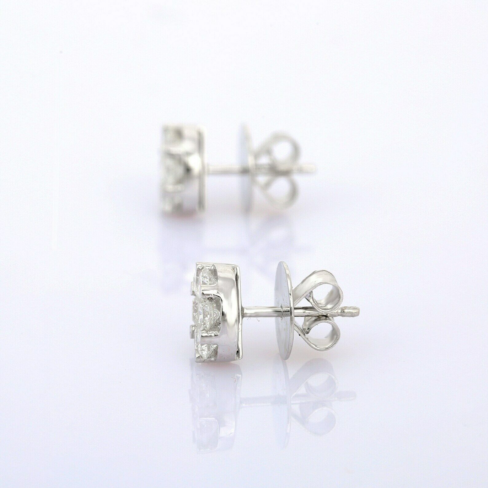 1.6ct Stud Earrings Round Cut Diamond Cluster Halo 14k White Gold Finish