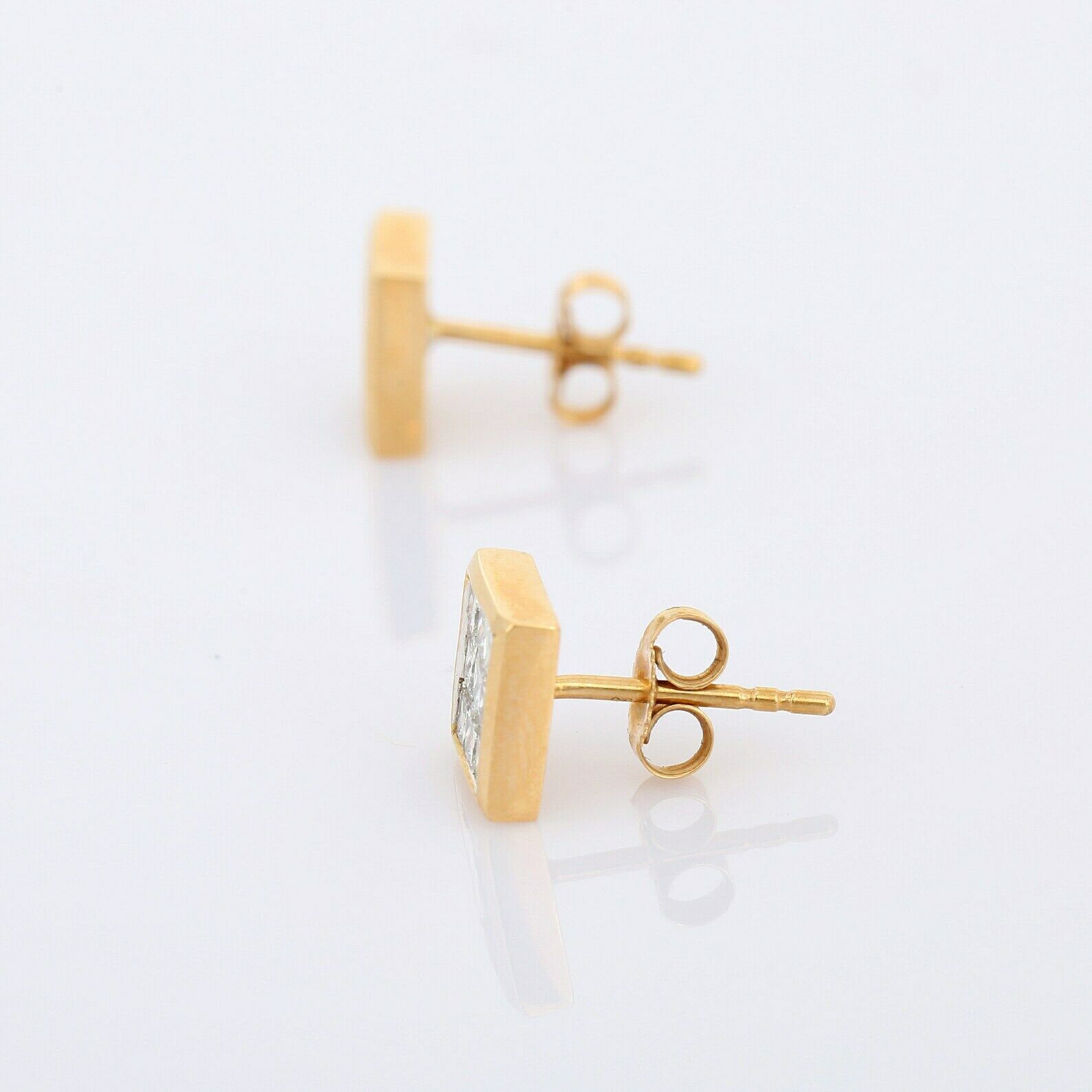 1.8ct Stud Earrings Princess Cut Diamond Squarish Cluster 14k Yellow Gold Finish