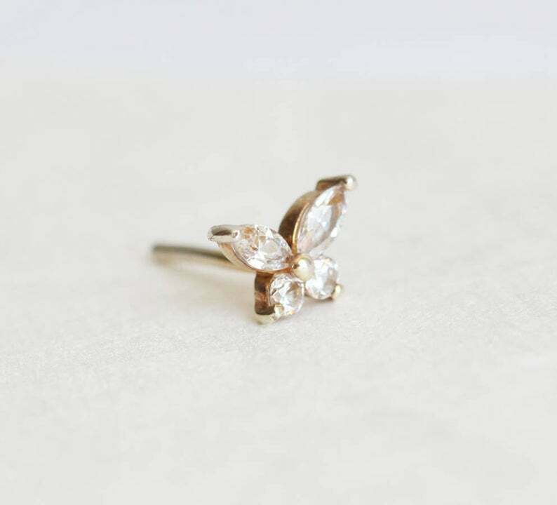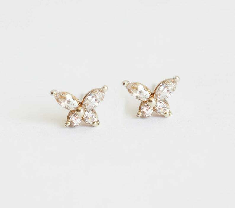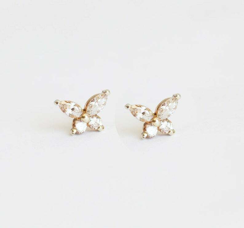 1ct Marquise Cut VVS1 Diamond Butterfly Design Stud Earrings 14k RoseGold Finish