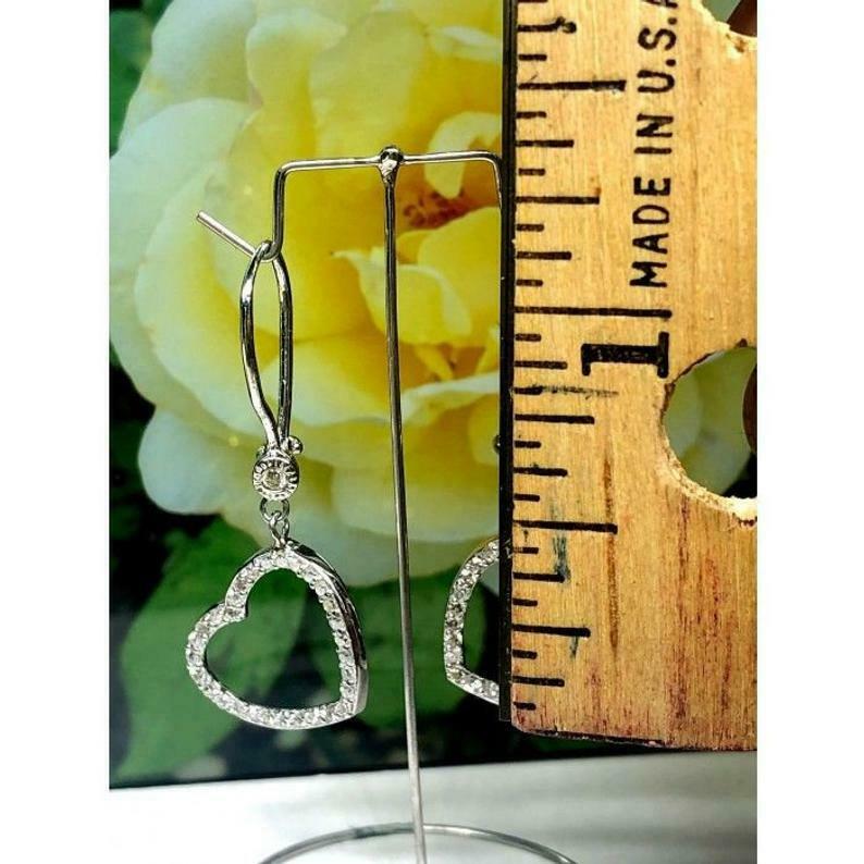 1ct Round Cut Diamond Open Heart Shape Drop Dangle Earrings 14k White Gold Over