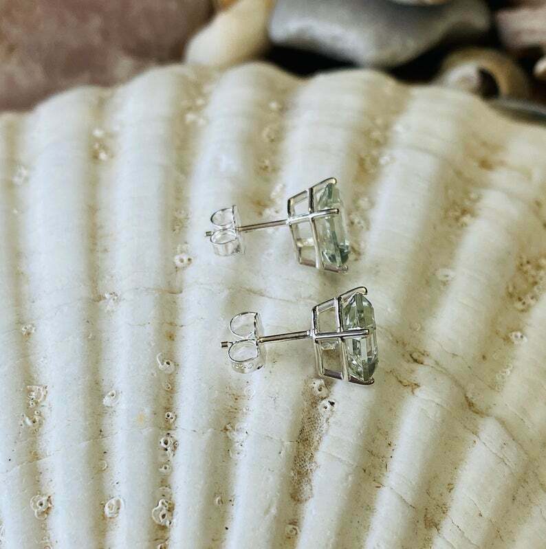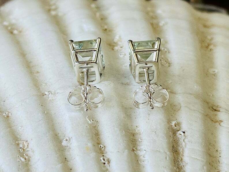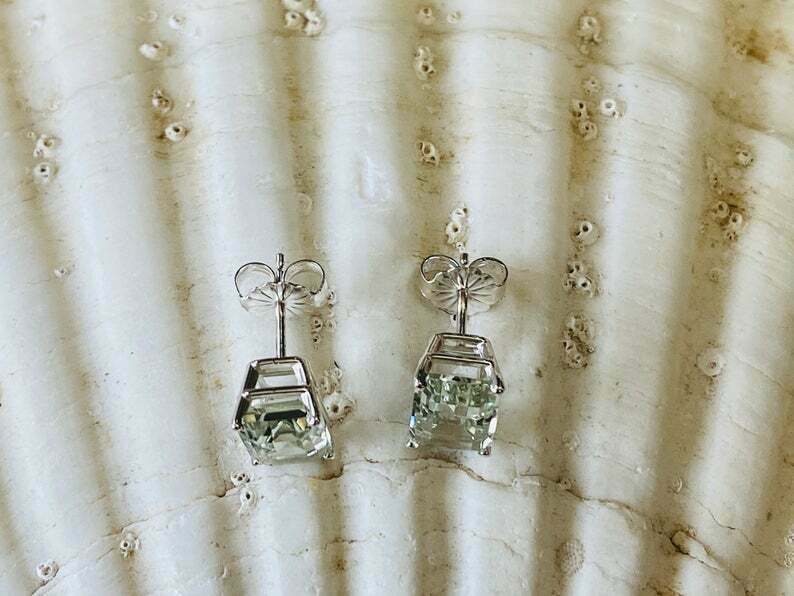 1ct Stud Earrings Emerald Cut Diamond Solitaire Women 14k White Gold Finish