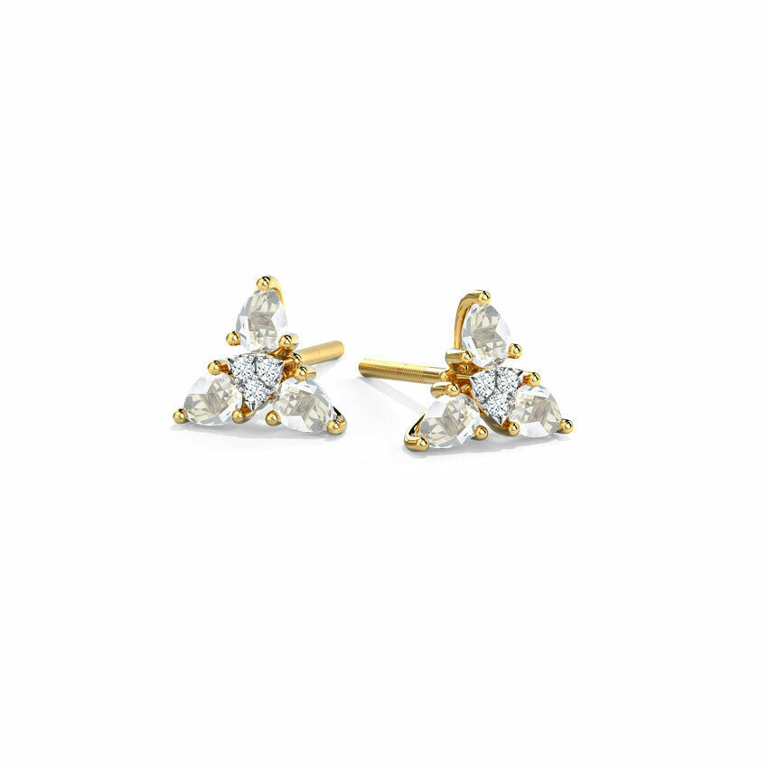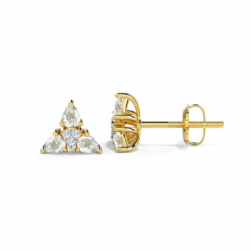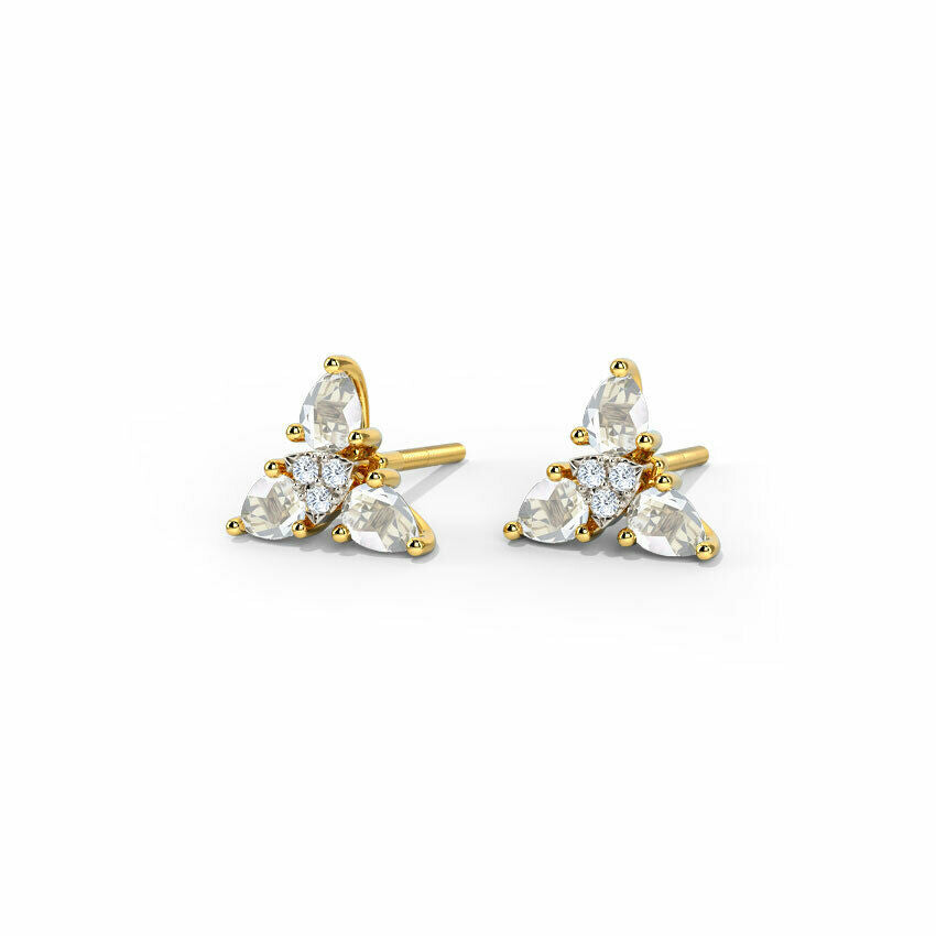 1ct Stud Earrings Round Cut Diamond Floral Petite Design 14k Yellow Gold Finish